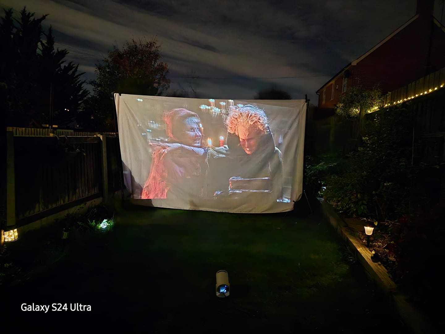 The projector can tilt up to 180°, meaning you can project on walls, ceilings, or even outdoors.